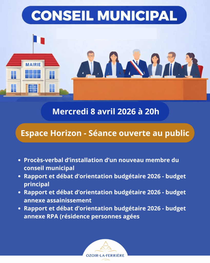Le prochain conseil municipal se tiendra mercredi 8 avril 2026 à 20h, à l’Espace Horizon.