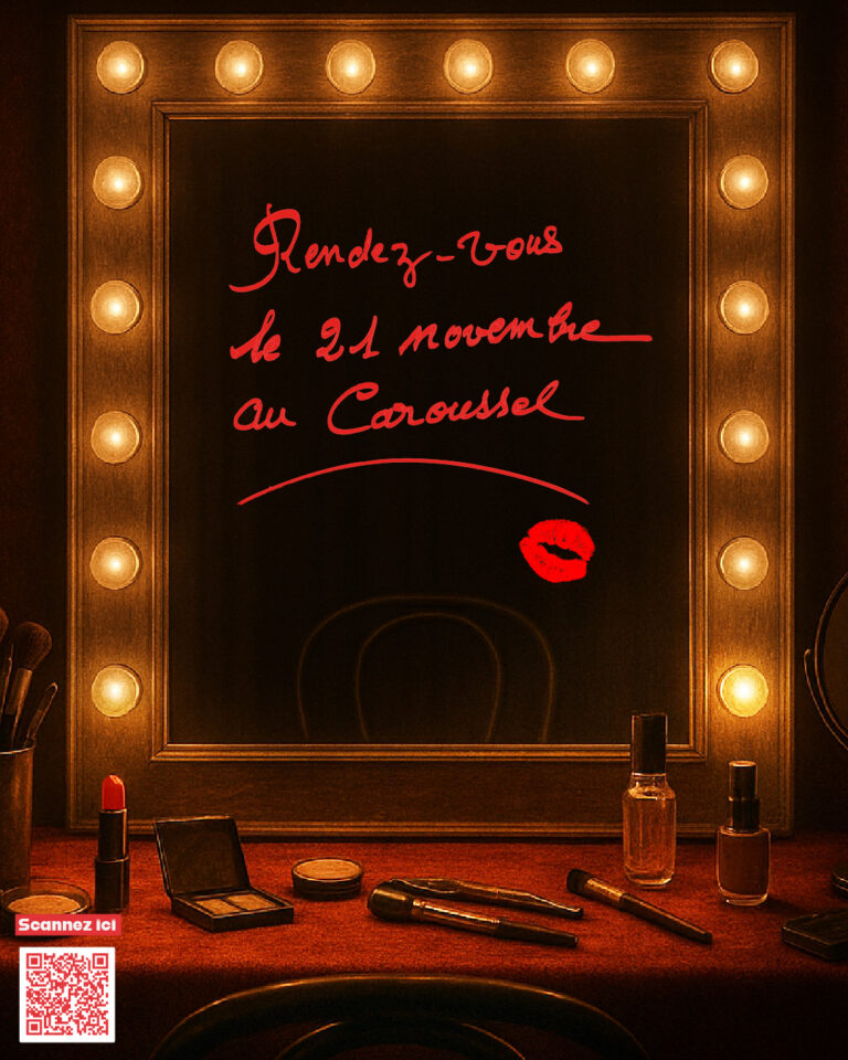 13 octobre 2025 - Dans Actualités‚ Super Actualité Par Bruno Da Cunha Commentaire désactivé Un miroir, un rouge à lèvres… un rendez-vous à ne pas manquer ! Un miroir, un rouge à lèvres, un message mystérieux : « Rendez-vous le 21 novembre au Caroussel ».Mais que peut bien cacher ce clin d’œil ?Restez connectés…Dans les prochains jours, nous lèverons le voile sur ce qui vous attend le 21 novembre prochain, à la salle du Caroussel.Une chose est sûre : cette soirée promet d’être inoubliable. Précédent Plan Local Mobilités – vos trajets, vos idées !
