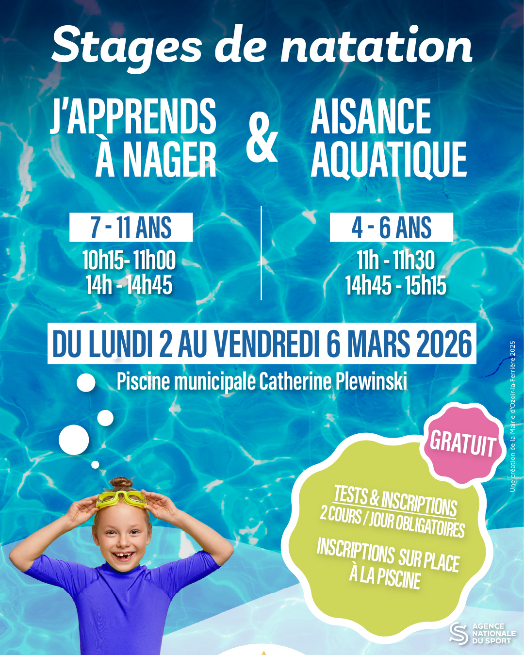 Inscriptions à la piscine municipale dés le lundi 12 janvier.